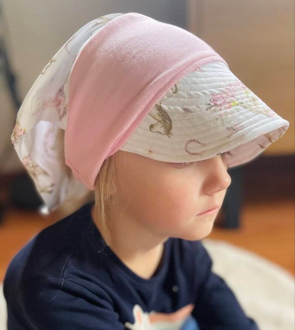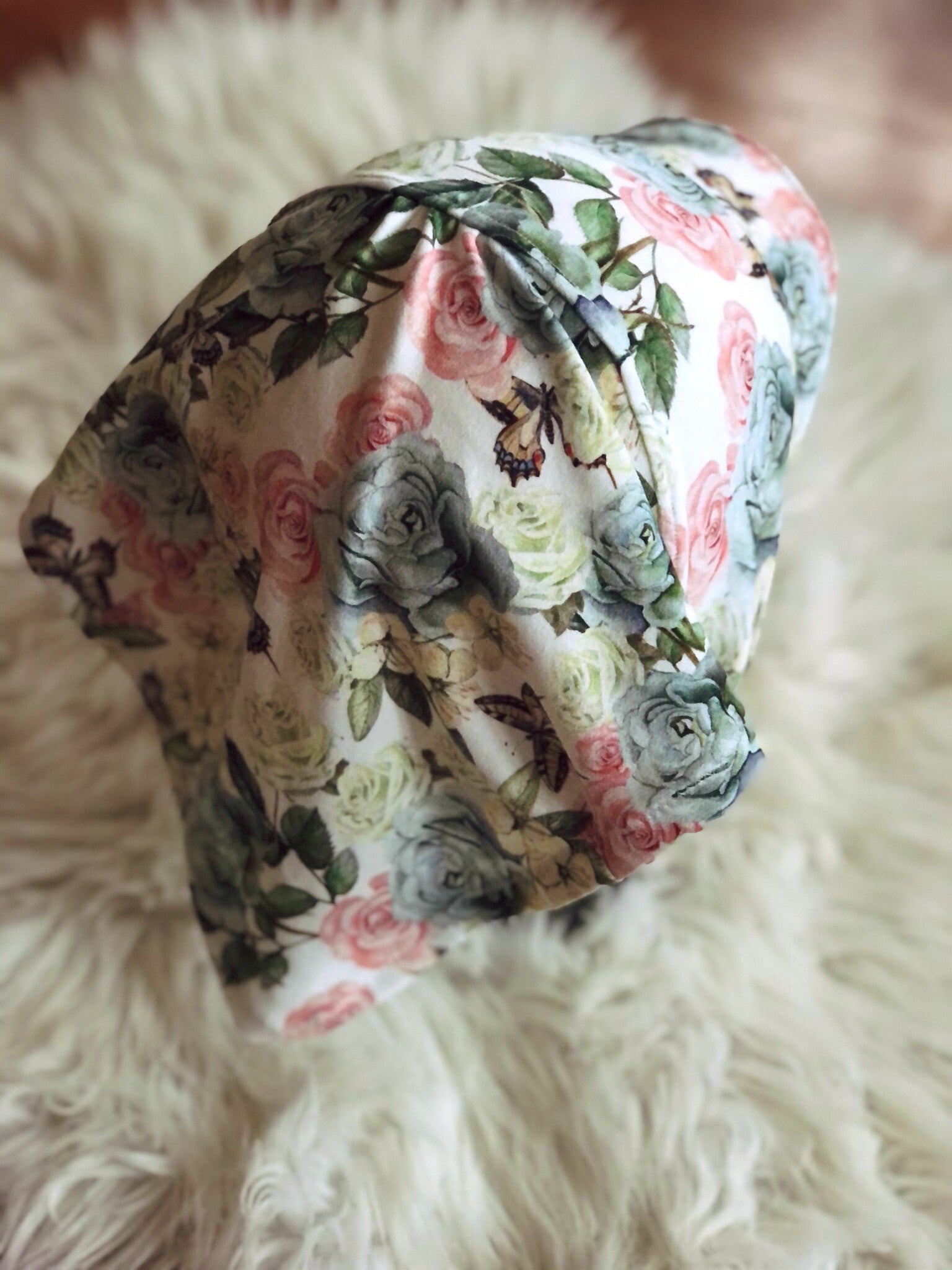 Bitte wähle deine Größe aus und trage deinen Wunschstoff und den Kopfumfang am Ende vor Bestellabschluss in das Kommentarfeld oder füge ihn in den Warenkorb hinzu.
